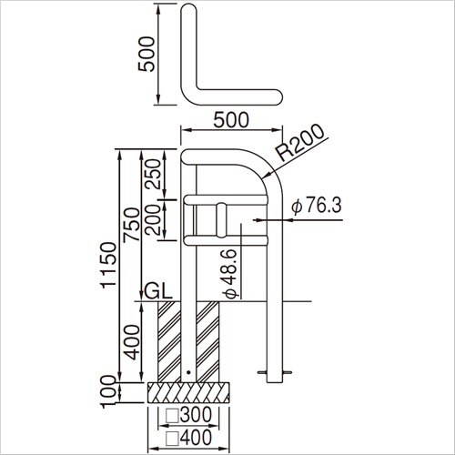・高架道路の柱脚やビル、ショーウインドーのコーナーにご使用いただけます。・標準タイプと組み合わせて、自転車の進入防止柵などにご使用いただけます。 [品番/呼称]HG83A-R [サイズ]Φ76.3mm [重量]30.2kg [材質]スチール [仕上げ]白色焼付塗装 [ご注意] ・82R・Y83Rタイプは、白色・赤白色焼付塗装品もあります。 ・HG83タイプは、茶色・赤白色焼付塗装品もあります。 ●仕様(1):固定式 購入に関する注意事項