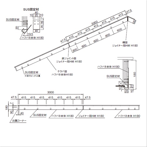 ・切妻屋根の妻側に山形に設けられる破風。破風板は、建築物への雨の吹き込みを防ぐ重要な役割を担っています。・一直線に伸びたハフパネが、屋根をより魅力的でシャープな意匠にします。 ・電解着色を採用し色褪せしにくく、いつまでも美しい外観を保てます。 ・アルミ押出形材のため、重量が軽く、取付方法も簡単なため、施工費が軽減できます。 [色]ブロンズ [サイズ]H180mm〜250mm [材質]アルミ [仕上げ]電解着色 [ご注意] ・鉄造及び木造用です。 ・色はブラック、ブロンズ、ステンカラーの3色よりお選びください。 ・納期:お問い合わせください。 購入に関する注意事項 特長 ・切妻屋根の妻側に山形に設けられる破風。破風板は、建築物への雨の吹き込みを防ぐ重要な役割を担っています。 ・一直線に伸びたハフパネが、屋根をより魅力的でシャープな意匠にします。 ・電解着色を採用し色褪せしにくく、いつまでも美しい外観を保てます。 ・アルミ押出形材のため、重量が軽く、取付方法も簡単なため、施工費が軽減できます。 ご注意 ・鉄造及び木造用です。 ・色は、ブラック、ブロンズ、ステンカラーの3色よりお選びください。 ・納期:お問合せください。