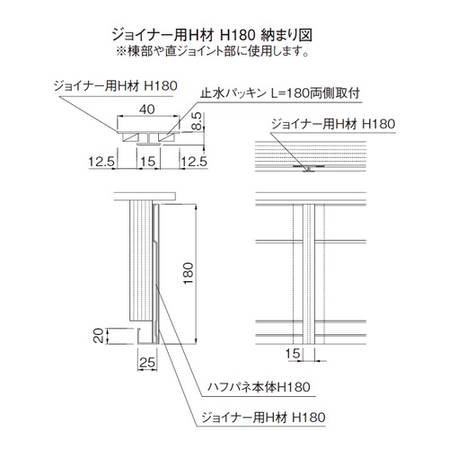 ハフパネ ジョイナー用H材 H180 1段用 ブラック