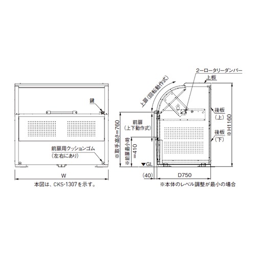 [サイズ]W1300mm、D750mm、H1160mm[本体重量]58kg [材質]ステンレス [容量]800l 購入に関する注意事項 運賃・組立工事費は別途です。 特長 ・サビに強いステンレス製です。 ・回転式上扉の耐久性性能10万回の耐久テストにクリアしています。 ・ロータリーダンパー標準装備により開閉音約25%低減。 ・市販の南京錠の取付けができます。(南京錠つる径φ7.5以下) ・塵溜り防止板によりゴミが隅に溜まりにくい構造です。 ・底板を取外して底板や地面の掃除が簡単にできます。 ・内側からレベル調整が可能です。