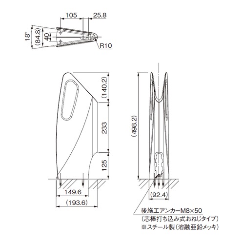 [材質]アルミ[仕上げ]アクリル焼付塗装 [サイズ] H498.2×W92.4×D193.6mm [重量]2.7kg 購入に関する注意事項 メーカー直送の運賃は、物量とお届け先住所により変動します。詳細は担当の営業所へお問合せください。 特長 ・鋳物ならではの有機的曲線美に仕上げたラティーナは、風にたなびく帆船をモチーフにスペインのデザイナーとのコラボレーションした作品です。 ・安定性はもちろん、自然になじみやすいカラーでさりげなく景観を彩ります。 ・複数設置する場合は、600mm以上離して設置してください。 ・推奨タイヤサイズ:20〜28インチ ・推奨タイヤ幅:〜55mm 注意 ・固定方法は、後施工アンカー M8×50(芯棒打ち込み式タイプ)。 ・各種サイクルスタンドの設置は、RC基礎(別途)が必要です。 ・各タイヤアスファルトには、設置できません。 ・価格には、取付け費用、運賃は含まれておりません。 ・納期:受注生産になります。