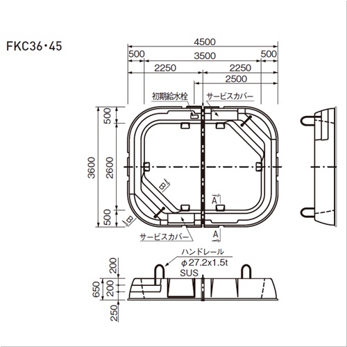 ・FRP仕様のため、錆びたりヒビ割れたりする事がなく、丈夫で衛生的です。・パネル組合わせタイプなので組立ても容易です。工期が通常のプールの1/10で済みます。 ・オプションのろ過器ユニットは、ポンプでプール内の水を取り込み循環させ、ヘアーキャッチャーとフィルターでゴミを取り、攪拌する事で水の腐食を防ぎます。(減菌・殺菌能力はありません) [品番/呼称]FKC36・45 [サイズ]3600mm×4500mm [重量]215kg [材質]FRP [ご注意] ・オプションでプールカバーもございます。お問い合わせください。 ・運搬諸経費は別途お問い合わせください。 ・組立、施工も別途承ります。お問い合わせください。 ・納期:受注生産となります。 ●水面積:9.7平方メートル ●水量:4.6t ●水深:0.52m 購入に関する注意事項