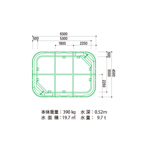 ・FRP仕様のため、錆びたりヒビ割れたりする事がなく、丈夫で衛生的です。・パネル組合わせタイプなので組立ても容易です。工期が通常のプールの1/10で済みます。 ・オプションのろ過器ユニットは、ポンプでプール内の水を取り込み循環させ、ヘアーキャッチャーとフィルターでゴミを取り、攪拌する事で水の腐食を防ぎます。(減菌・殺菌能力はありません) [品番/呼称]FKC45・63 [サイズ]4500mm×6300mm [重量]390kg [材質]FRP [ご注意] ・オプションでプールカバーもございます。お問い合わせください。 ・運搬諸経費は別途お問い合わせください。 ・組立、施工も別途承ります。お問い合わせください。 ・納期:受注生産となります。 ●水面積:19.7平方メートル ●水量:9.7t ●水深:0.52m 購入に関する注意事項