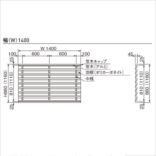 ・外からの視線をシャットアウトし、プライバシーを守ります。・光線透過率に優れていますので、自然な光をたっぷりと採光します。 ・雨や雪に強く、オールシーズン活躍します。 ・風通しがスムーズで、空気も新鮮です。 ・ポリカーボネート素材の採用で、耐衝撃性・耐久力もアップしました。 [色]ステンカラー [サイズ]H1160mm、W1400mm [材質]アルミ・ポリカーボネート [仕上げ]半透明マット [ご注意] ・品番のブロンズ、ホワイト、ステンカラーは、アルミ材(笠木・中桟)の色です。 ・本体には、取付用ブラケット(出幅100mm、SUS304)、笠木キャップ4個、タッピンビス、ボルト・ナット、テクスネジ一式が付属しています。 ・運搬諸経費は別途お問い合わせください。 ●羽根数:11枚 ●中桟数:3本 ●BK数:4個 購入に関する注意事項