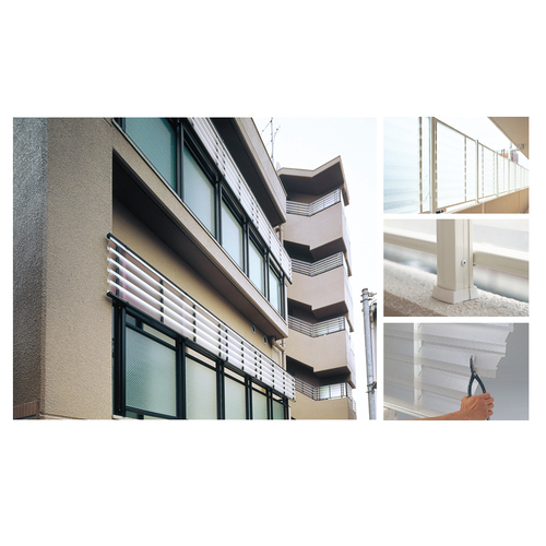 ・光線透過率に優れていますので、自然光をソフトに拡散し、やさしく視線を遮ります。・金具が見えない美しい仕上がりです。 ・長さ調節の切断ができるので設置場所にピッタリ収まります。パネルと部材のシステム部材なので、建物と調和したフェンスづくりが可能です。 ・ポリカーボネートは弱酸、アルコール、油などに安定しますが、アルカリ、芳香族炭化水素、塩素化脂肪炭化水素類には溶解します。 [色]ブロンズ [サイズ]H560mm、W2000mm [材質]アルミ・ポリカーボネート [仕上げ]半透明マット [ご注意] ・耐薬品性は温度と応力によって変わりますので、薬液存在下での使用には十分ご試験ください。 ・ブロンズ、ホワイト、ステンカラーはアルミ材(笠木、中桟)の色です。 ・パネル本体のみで、笠木用のFキャップ、施工用各種部材は別売りです。 ・下記の他に660、860、1060、1160、1260の準規格もあります。 ●羽根数:5枚 ●笠木・中桟の色:ブロンズ、ホワイト、ステンカラー 購入に関する注意事項
