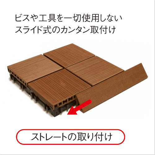 [材質]再生木材[サイズ]L=300×2本 [重量]0.5kg 購入に関する注意事項 ・ビスや工具は不要。スライドさせてはめ込むだけのカンタン取付。 ・風対策等に。 ・段差を解消し、美しい仕上がりになります。 ・高層階や屋上など強風にさらされる可能性がある場所では、商品が風にあおられて転落する可能性があります。