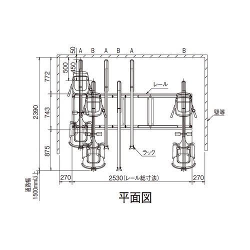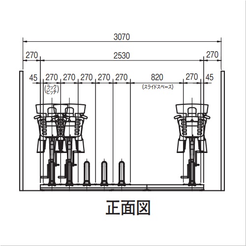 [サイズ]全幅1890mm、奥行2340mm、高さ454mm[付属品]スチールオールアンカーM8×70 [材質]ラック・レール:スチール [仕上]ラック:プラチナブラウン塗装 [収容台数]7 [ラックピッチ]270 [備考]連結型 購入に関する注意事項 運搬経費は別途お問い合わせください。 特長 ・3人乗り自転車(幼児2人同乗)、電動アシスト自転車に対応した高強度ラックです。 ・ラックピッチ270mmでハンドルやカゴの干渉を軽減しました。 ・レールは高耐食メッキ鋼板を使用しています。 ・スライドスペースは820mmです。 ご注意 ・20台毎に820mmのスライドスペースが必要になります。また、必ず20台毎に1セット基準型を設置してください。 ・20インチ以上の自転車で設定されています。 ・連結型は単独では使用できません。基準型の右側に連結してください。