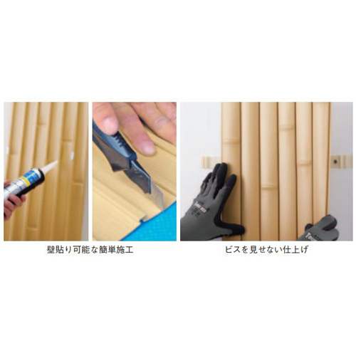 [材質]耐候性強化樹脂(ASA)[サイズ]約 W53×L2000×D16 [重量]300g [バリエーション]枯竹 購入に関する注意事項 ・「青竹」は価格が異なります。 ・納期:ご確認ください。 ・メーカー直送の運賃は、物量とお届け先住所により変動します。詳細は担当の営業所へお問合せください。 特長 ・丸竹を 3 等分に割った形状で、パネルを上から押さえて、ビスや継ぎ目などを隠せます。横方向の装飾に使います。