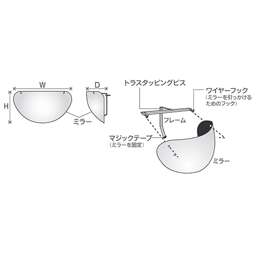 T字路の衝突防止や病院・介護施設の見守りに!視野角は180°以上。壁に設置したフレームに引っかけるだけのライト感覚の壁掛けミラーです。 [品番/呼称]ラミL7 [取付方法]壁付け [色]グレー(金具) [サイズ]H340mm、W665mm、D235mm [重量]0.64kg [材質]アクリル(ミラー)・アルミ(金具) [像の大きさ(曲率半径)]414R 購入に関する注意事項 法人様限定商品となります。建築現場や個人宅への配送は不可となりますのでご了承ください。 特長 ・ライト感覚の壁掛けミラーです。(180°) ・安全・防犯・サービス・効率アップに最適です。 ・用途:公共施設・商業施設・病院・福祉施設・オフィス・学校・工場・倉庫・他 ・グッドデザイン賞受賞 ご注意 ・室内・壁付け専用 ・壁付けのみ。取付けは壁にビスを止め、ビスにフレームをかけ、フレームのフックにミラーを掛けるだけです。 ・オイルミスト等の発生場所ではご使用できません。 ・運送諸経費は別途お問い合わせください。