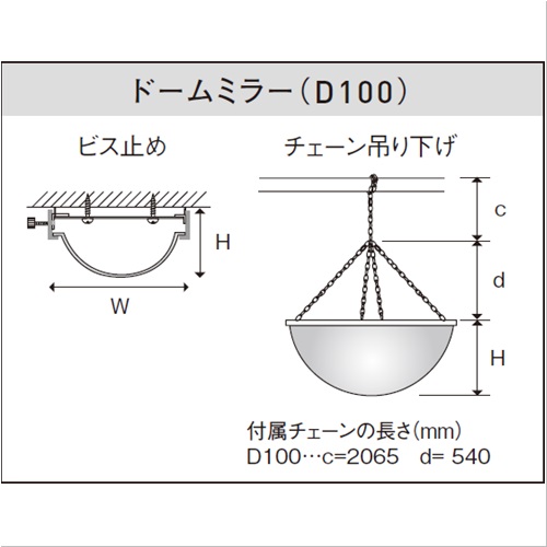 360°マルチビジョン、視認力バツグン安全・防犯・サービス・効率アップに最適 [品番/呼称]ドームミラーD100 [取付方法]チェーン吊り下げ、直付けの両方に対応 [材質]アクリル(ミラー)・アルミ(金具) [サイズ]H420mm、WΦ1043mm [色]シルバー(枠) [像の大きさ(曲率半径)]512R [重量]5.3kg 購入に関する注意事項 法人様限定商品となります。建築現場や個人宅への配送は不可となりますのでご了承ください。 特長 用途:公共施設・商業施設・病院・福祉施設・オフィス・学校・工場・倉庫・他 ご注意 ・チェーン吊り下げをする場合にはチェーンを巻き付けられる場所があることを事前に確認ください ・オイルミスト等の発生場所ではご使用できません。 ・運送諸経費は別途お問い合わせください。