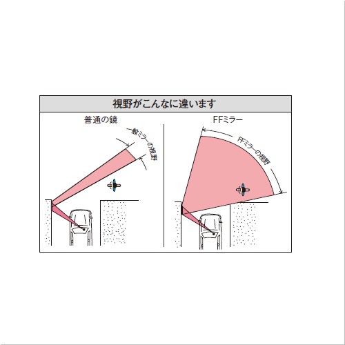 [サイズ]370x480x6.6mm[本体重量]1300g [材質]ミラー:アクリル 枠:アルミ [像の大きさ(曲率半径)]700R相当 購入に関する注意事項 代表画像を表示しています。 特長 ・室内・屋外で使用可能です。 ・FFミラーはフラットなのに視野が広い不思議なミラーです。出っ張らないので違和感のないデザイン。目線と同じ高さに取付けられるので、自然と安全確認ができます。素材は耐衝撃性、耐候性に優れたプラスチック。割れにくく、長寿命の安心設計です。 ご注意 ・オイルミスト等の発生場所ではご使用できません。 ・無料貸出制度、運送諸経費については別途お問い合わせください。