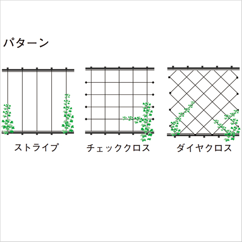 [材質]SUS304 (7×7)[仕上げ]12ナイロン樹脂被覆 [サイズ]適応寸法 L=2001mm〜L=2500 mm以下 [備考]呼ビ径φ6mm(芯線φ2.4mm)両端バネ付(片側クリップ付) 購入に関する注意事項 ・取付施工は専門業者へご相談ください。 ・植栽及び潅水計画は、別途専門業者へご相談ください。 ・納期及び梱包送料は、都度お問合せください。 特長 ・少ない部材の構成なので低コストで施工することができます。 ・コンクリート壁、ALC壁への施工が可能です。また、ワイヤーは現場に合わせてカットできるので設置が容易です。 ・壁面からワイヤー持出し距離は、約80〜90mm。壁面と植栽との間に充分な距離を確保できるので壁面を汚したり傷めたりしません。また外断熱効果を高めます。 ご注意 ・自由設計となります。現場寸法に応じた最適なプランをご提案いたします。お問合せください。 ・下地M10アンカーボルトは建築工事です。 ・Lアングルは基本建築工事です。 ・ターンバックルは「アルティマターンバックル(232-265、232-266、232-267)」をご参照ください。
