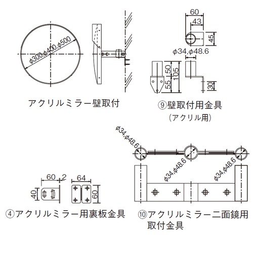 ・ガレージや駐車場の出入り、工場などの通路や階段、エレベーターの乗降口などの安全確認に最適なミラーです。・コンパクトで取付や角度調整なども容易です。 [品番/呼称]AKP-400K [サイズ]Φ400mm [重量]3.9kg [材質]鏡面:メタクリル樹脂、裏板:塩化ビニール、フード:ボリガーボネート [仕上げ]真空蒸着 ●仕様:丸型二面鏡/壁面取付 購入に関する注意事項 代表画像です。 ご注意 ・支柱、壁取付以外にも電柱、天井取付仕様や工事現場の単管取付などにもオプションにて対応致します。 ・納期:ご確認ください。