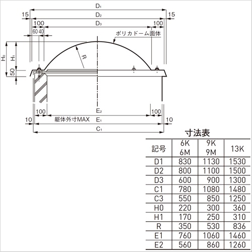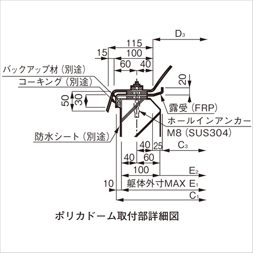 ・一般型直付タイプです。 [色]乳半色 [品番/呼称]13K [サイズ]1300角 [重量]15kg [付属部品]パッキン、アンカー金物、ボルトセット、FRP製露受け [材質]ポリカーボネート ●原板厚さ:4.0mm ●仕様:一般型直付けタイプ 角型 購入に関する注意事項
