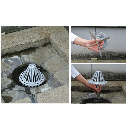ドレインに差込むだけの、改修専用ストレーナーキャップです。建物の屋上やマンションのべランダなど、排水溝のゴミが排水口に流れ、詰まってしまうのを防止する網状のキャップです。 屋上防水改修工事の際に改修用ドレインを使う場合は、従来のストレーナーキャップではほとんど利用できないため、改修専用のものが必要になります。 ポリカーボネート製で錆の心配が無く、難燃性・耐候性・耐衝撃性に優れ、コストパフォーマンスの高い商品です。 (ライトグレー色)ドレインに差し込むだけの簡易設置施工です。 弾性の強いステンレス製の脚が排水口にしっかり刺さり固定します。 目詰まりしにくいシンプルな形状で、適応パイプ径に対し、フレキシブルに対応します。 横型は、パイプ径に合わせて脚の位置をスライドさせることで任意の位置に調節可能です。 [本体重量]100g [材質]ポリカーボネート・SUS304 ●適応パイプ呼び径:φ75〜φ150 購入に関する注意事項