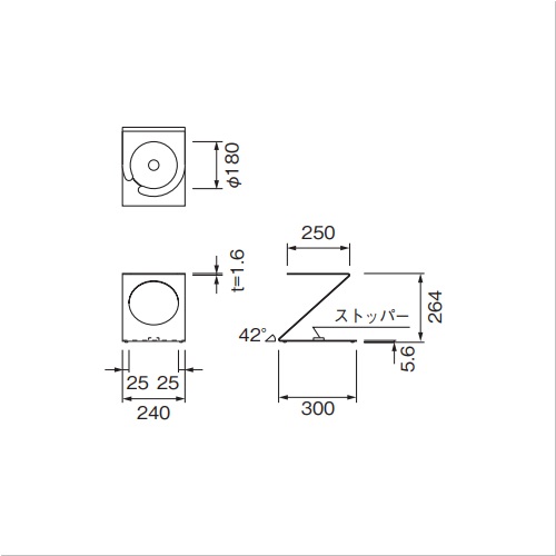 ミニグレビティーヒンジ 90゜ストップ ステンレス製