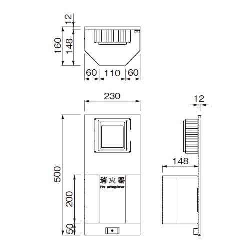 [本体] スチール[サイズ] H500mm、W230mm、D160mm [備考] 乾電池(別途)式LEDピクト [重量] 3.9kg 購入に関するご注意 ・消火器は含まれておりません。