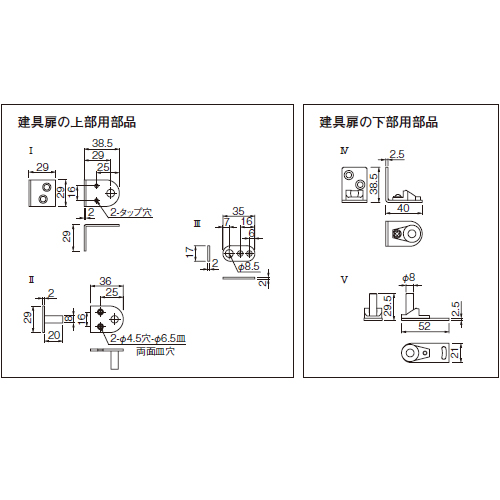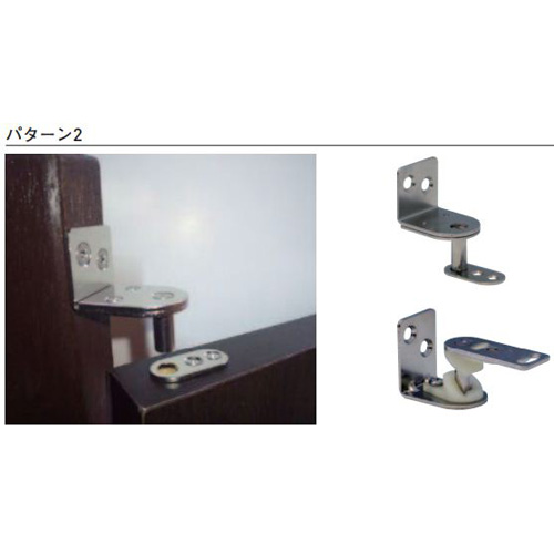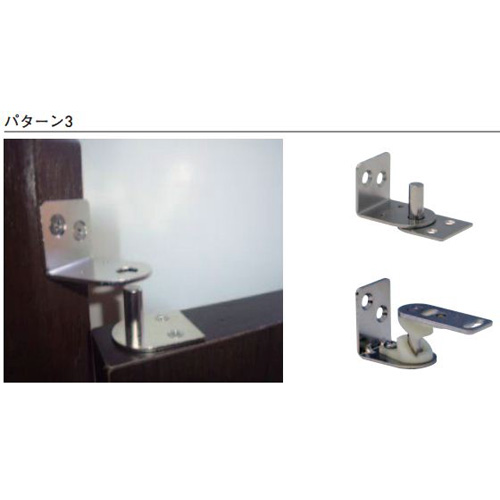 [材質]ステンレス(SUS430)※芯棒のみSUS304[仕上げ]研磨 [適用扉厚]パターン1・2:20〜40mm、パターン3:30〜40mm [適用扉重量]10kg以下 [重量]300g [付属部品] ・SUS十字穴付皿タッピンネジ 3×25:2本 ・SUS十字穴付皿タッピンネジ 4×20:4本 ・SUS十字穴付ナベタッピンネジ 4×25:2本 購入に関する注意事項 特長 ・どちらにも開閉可能な扉にするためのヒンジです。 ・90°でストップします。 ・扉上部側の取付けパターンは、3通りより選択できます。 ・パターン1と2は、扉上部に穴加工が必要です。外観を重視される場合は、パターン1をお勧めいたします。 ・パターン3は、穴加工が要らない取付けタイプです。扉回転の際に、芯棒がせりあがってくるのでご注意ください。 ご注意 この商品はI、II、III、IV、Vの部品が各々 2個ずつ(扉2枚分) 入っています。