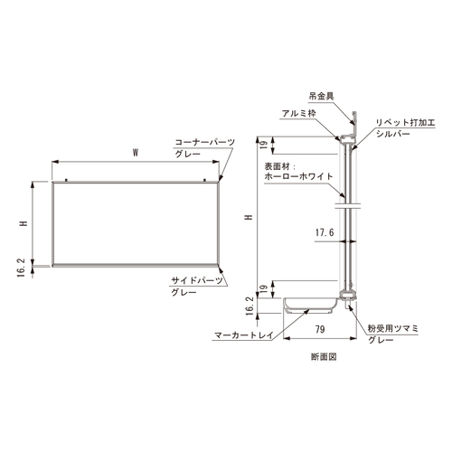 ペントレイ固定式 ホワイトボードメタルライン TR-15