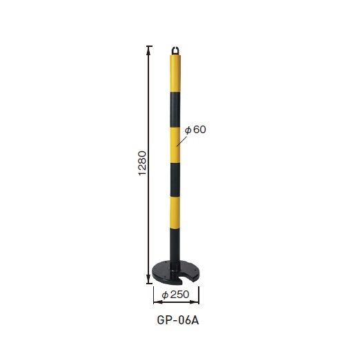 やわらかゴムポール120cm くぼみ型土台 GP-06A ブラック/イエロー