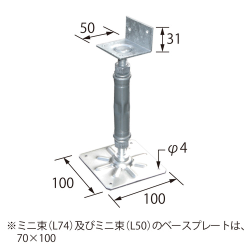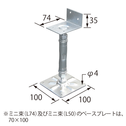 ウッドデッキ用鋼製束 ミニ束 (L74)