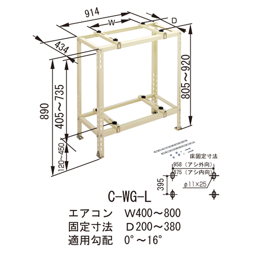 スクエアタイプ 3WT L4000-S ウッドテンショナー 基本セット