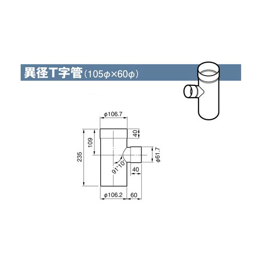 雨とい 異径T字管60 SG-472 主管 105φ×0.8枝管60φ×0.6