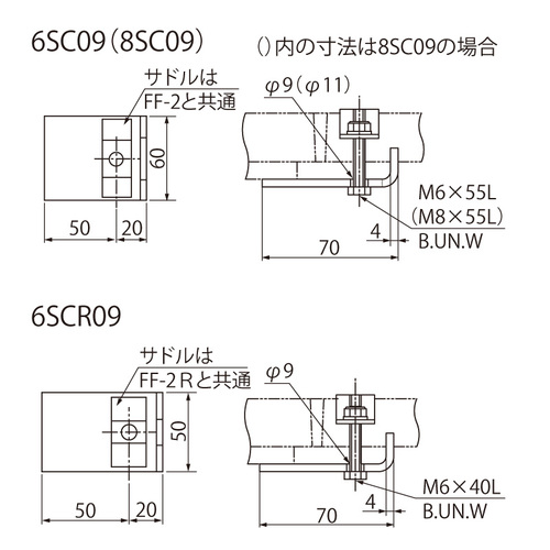 FRPグレーチング用取付金具 6SC09(8SC09)、6SCR09