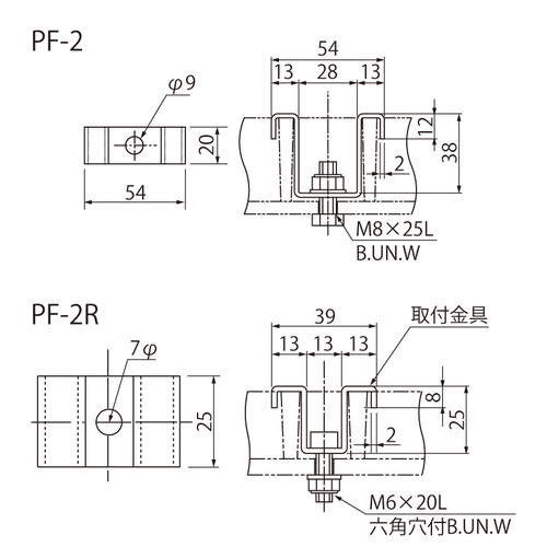 FRPグレーチング用取付金具 PF-2、FP-2R