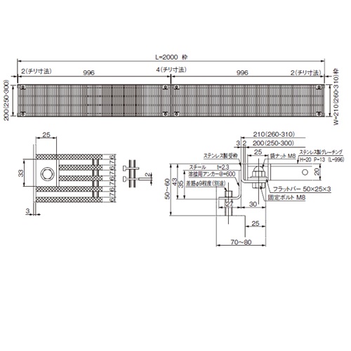 枠付 エレベーター出入口グレーチング 200