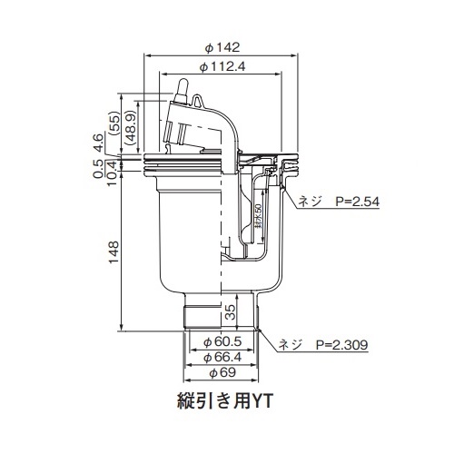 防水パントラップ 縦引き用YT ホワイト