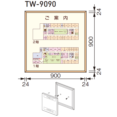 文字・ピクト入(多色) 木製フレームサイン 案内板 TW9090